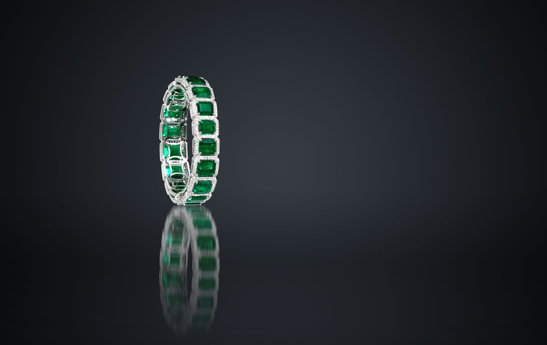 Set with Columbian Emerald 34.72cts, Diamond 7.40cts mounted in 18K White Gold